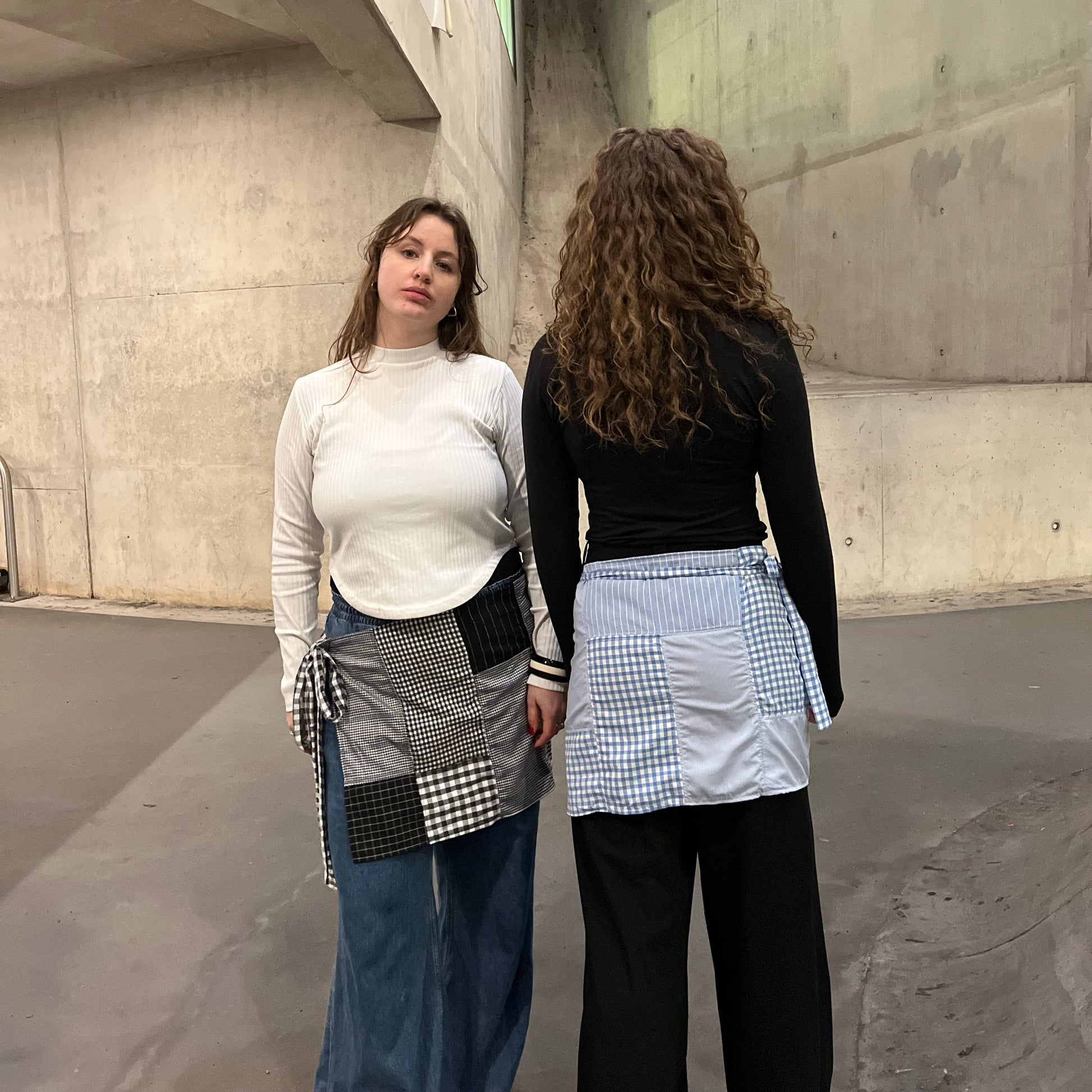 A patchwork wrap skirt designed as a layering piece rather than a standalone item. Adjustable ties allow the piece to be wrapped and secured around the body in different ways, making it easy to layer over trousers, dresses, or other silhouettes. Lightweight and made to style, not to follow rules.