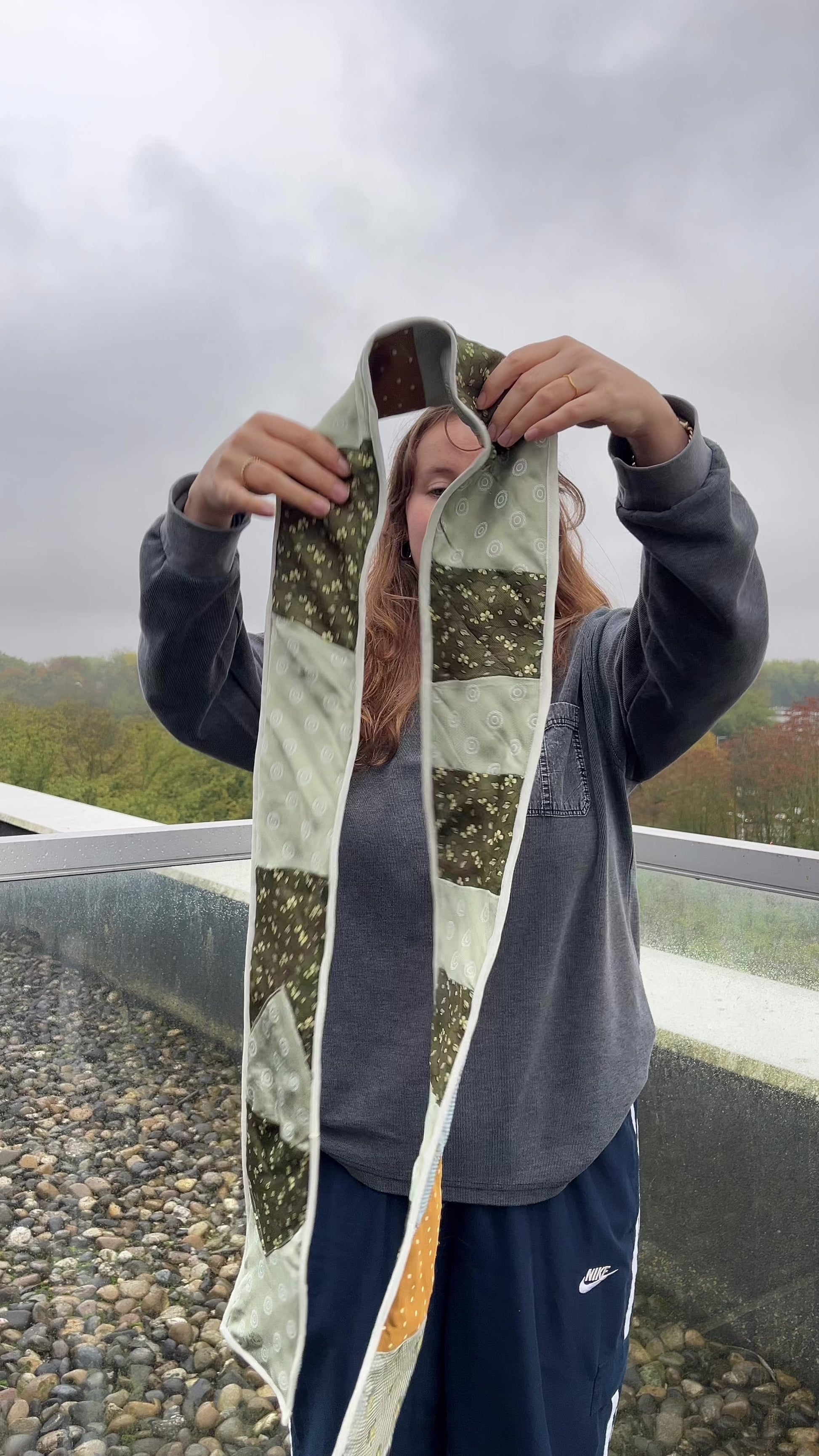 Business meets streetwear. A patchwork of past lives. Handcrafted from thrifted ties, reworked into a soft, wearable statement.